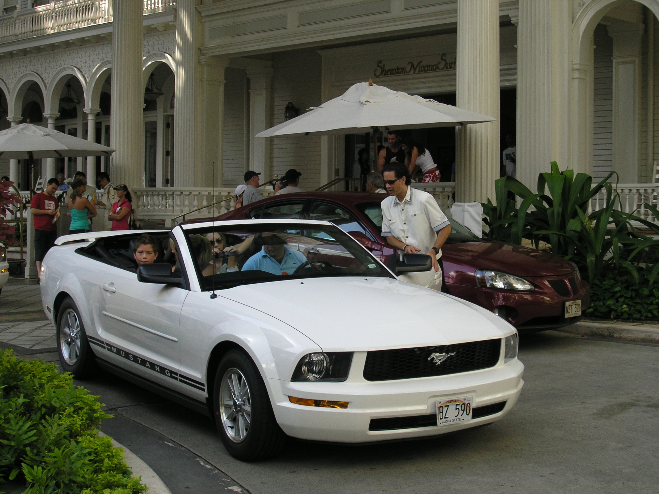 Hawaiian uncle by the beach Ford Mustang convertible, must be a tourist ... lol. The Sheraton Moana ... too bad we are not staying here Kualoa Ranch, Oahu