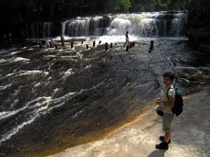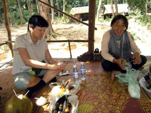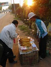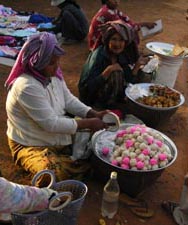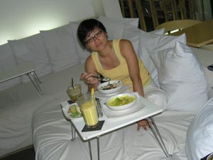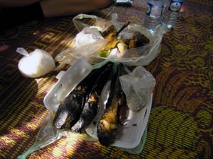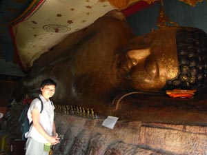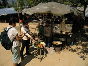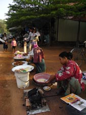 Nov 2008 - Phnom Kulen The typical road conditions to Phnom Kulen ... full of potholes and 10 km/h ![]() Enroute we encountered 3 monks living and mediating in the jungle in Phnom Kulen. In the day, they would be standing by the road, as passer-by offers alms. Soluy helped made the necessary logistics such that we were able to give our offering of simple bread and water to the monks. One of the monks chanted in Khmer (I think), another asked where we are from and the last monk gave us a paper charm. ![]() This area has recently been cleared of mines. Snake wine at the local market ![]() Stone recling buddha at the top of the temple. ![]() Making sure the little kids are still looking after our shoes. ![]() Jackfuit and sticky rice, grilled in banana leaf. Very yummy ... should have bought another one. ![]() River of 1000 lingas ![]() Spring water source ... water was super clear ![]() Lunch @ local grill stall, rented a picnic hut (5000R) ... lunch cambodian style - grilled chicken, grilled catfish, chinese sausage - tamarind,salt,lime,garlic,chilli - mixed with rice and fish was very good - fresh coconut *grilled catfish is my favourite ![]() ![]() Waterfall - scene from the tomb raider ![]() Sock tested her goretex shoes when one of her foot slipped into the river when climbing the rocks to see the lower part of the water falls. Obviously Goretex works ... the other part of her shoe was dry but the inside was wet :> Dinner @ Blue Pumpkin - Lemon-mango yorgurt shake, Ginger carrot lemongrass drink, amok fish ravioli, chicken raivioli. - Serving was small considering the price, then again there are comfy seat and free wifi. ![]() |