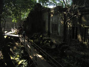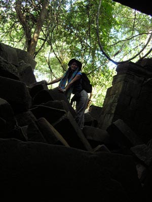 | 28 Nov 2008 - Koh Ker (pronounced "Kor Kay") 120 km drive (3 hours) from Siem Reap, so called the "dancing road". Stopped by the local stalls and market, got a local french loaf ("normal" non-sweet version) for 500R and some local snacks (cocount based cambodia dountnut? and charcoal grilled waffles) ![]() Arrived at Koh Ker, we packed brunch from blue pumpkin as Soluy was afraid that the water and food at Koh Ker was "too local" for us. Apparently not :> had the noddles (mama) soup with lots of veg ... (maggi noddles). Very yummy. Yes i know we eat a lot :> Koh Ker Another temple ruins set in a quiet remote jungle area ![]() ![]() ![]() No need to remind us to strictly stick to the tracks ... passing by some active demining activities in the area. ![]() Teabreak @ local rice stall at Beng Mealea - rice with sour & spicy soup and pork with veg Beng Mealea ![]() One of the few temples where the platform is high enough such that a top-down view of the site is possible. Climbed through a half-covered collapsed doorway to a 10m walk in one of the gallery the temple. ![]() ![]() ***** 5 star toilets at Beng Mealea and Koh Ker ... they are cleaner than some toilets in Singapore! |