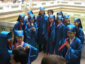 Day 4 to Day 6 - Hanoi - Singapore| 26 Nov 2009 - Hanoi Arrived just before 5pm . Guide was at the station waiting for us. We reached Hanoi Boutique Hotel at 5.30am. Hang around till someone checkout at 6.30am and room was ready for us at about 7.30am. Running out of local currency, so we took a walk to Hang Trung. This street has a row of gold smith shops which also did currency exchange with one of the better rates in town. Along Hang Buom, we bought coffee beans. Was orginally intending to buy Trung Nyugen, but was told that it was not 100% coffee, so ended up buying the weasel brand which was from coffee farms in south vietnam. Walking to Via Mien (Temple of Literature) was suppose to be a 15 mins affair but crossing vietnamese roads was an ultimate challenge and it took us almost 1 hour. We were hungry by the time we reached there and decided to go to KOTO prior to visting the temple. KOTO (Know One, Teach One) is a not-for-profit organization which runs this restaurant and provides vocational training for street kids in kitchen and cooking classes. After a Banana Pancake, muffin and coffee ... we were ready to move on Văn Miếu (文廟) Temple of Literature Obviously a favourite venue of the locals for wedding photoshots, graduating students ... Obviously tradition still runs strong in the place, students in their "Confucius styled" graduation dress. Walking from Template of Literature to Ho Chin Minh Mausoleum, passing by numerous french houses which are now government houses or ambarssies. Ho Chin Minh's Mausoleum Don't cross the white lines else you will be greeted with a sharp blow of the whistle from the serious looking guards. Wandering around the area, you find the other attactions like Ba Ding Square, Presidential Palace and more french colonial houses ... etc Presidential Palace One pillar pagoda was under repair ... walked around the small lake. Decided to take a cab back to the old quarters to Cha Cha Va Long for lunch. Cha Cha Va Long was a "one-dish" restaurant, fish in sizziling oil with lots of dill. Quite an unique taste but was relatively expensive at VND$100K per pax. Next we visited 89 Ma May street, which was a preserved tube house. Passing by Green Tangerine, a french restaurant in a old house. Unfortunately we did not have a chance to dine. Ngoc Son Temple Taking a break The famous Hanoi "Bia Noi Corner", where USD$0.50 beer are served by the road. Think it is now invaded by more tourist than locals. Last night in Hanoi, so last chance for us to try all the local specialities Banh Cuon Gia TruyenFres Freshly made Vietnamese "Cheong Fun", rice roll with pork and mushroom. Nha Hang Phu My Pho Xao (Fried Beef Noodles) ... this was so good that I just have to eat this dish one more time :> South Pacific Travel was great, their customer service rep came to the hotel to get our feedback for the trip and also gave us a token of a silk tie and scarf. |